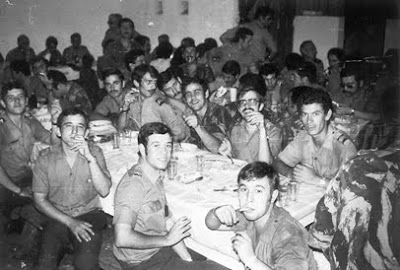 A foto não tem a melhor qualidade, mas reflecte o espírito de camaradagem que se vivia na CCS do BCA. 8423, que missionou militarmente pelo Quitexe e Carmona. Tem quase 35 anos e refere-se à noite da ceia de Natal de 1974. O tempo passa.