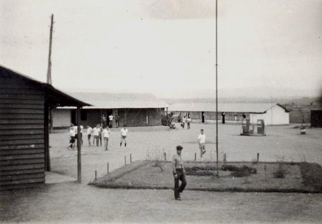 Por ali cirandava a tropa toda: eram as casernas, os balneários, a cozinha, o refeitório, as oficinas. Vêem-se ali até as duas bombas de combustível. E este espaço arrelvado, à frente, era privilegiado para tirar umas boas fotos para as famílias e namoradas! Quantas lá se terão tirado!!!!