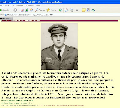 Eu lembrava-me bem e, por isso mesmo, conversei com o Cruz (que me acompanhava) sobre o que deveríamos dizer aos meus familiares. Acabei por os alertar para os perigos iminentes, para as escaramuças que se viviam no norte e às quais a população do sul não dava crédito. Por lá, andava tudo pacífico, era tudo rosas e cravos num mar de tranquilidade. Quais guerras, quais quês?!